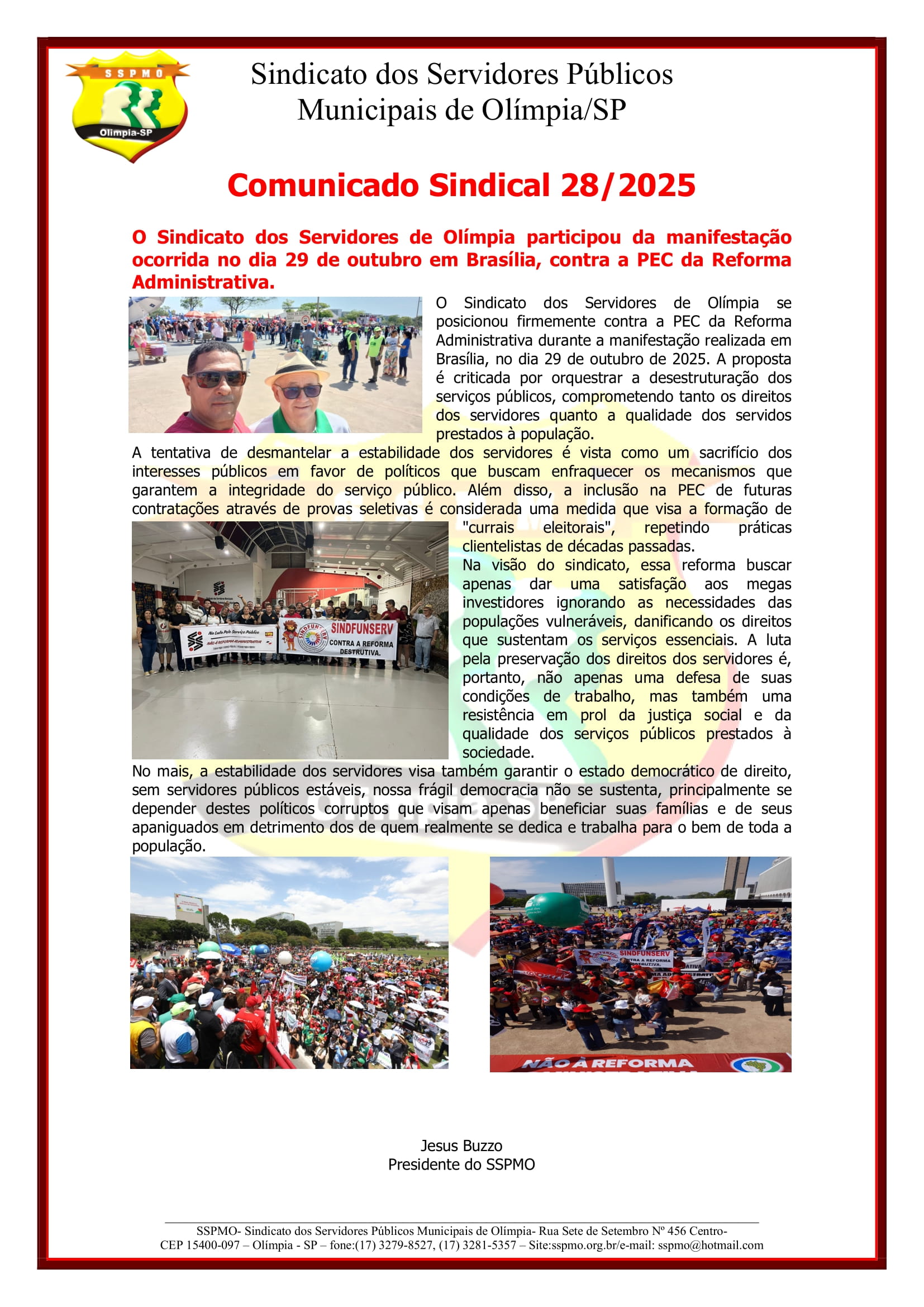 COMUNICADO 28 DE 2025 - Sindicato dos Servidores Públicos Municipais de Olímpia-SP