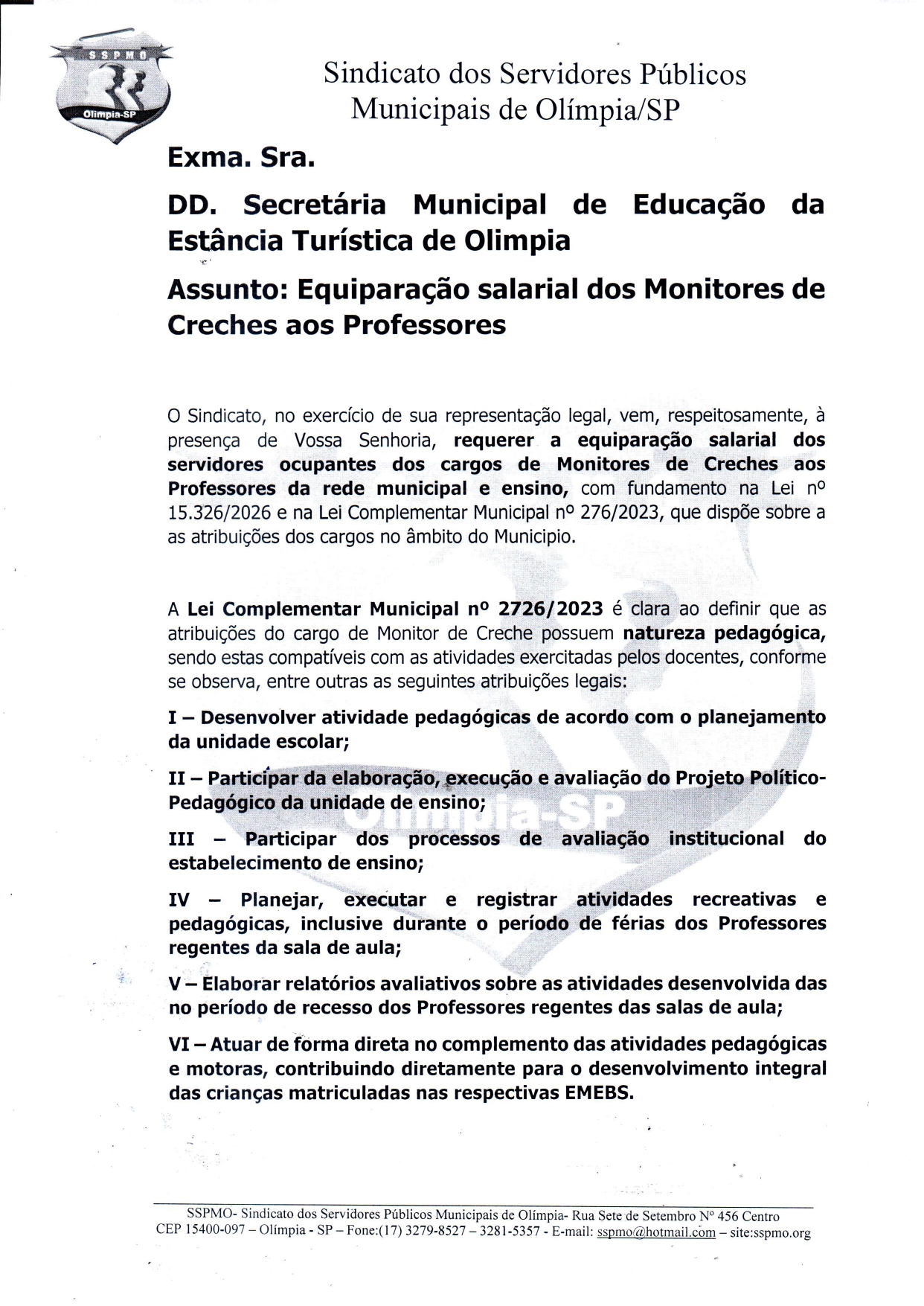 Equiparação Salarial Monitores de Creche - Sindicato dos Servidores Públicos Municipais de Olímpia-SP