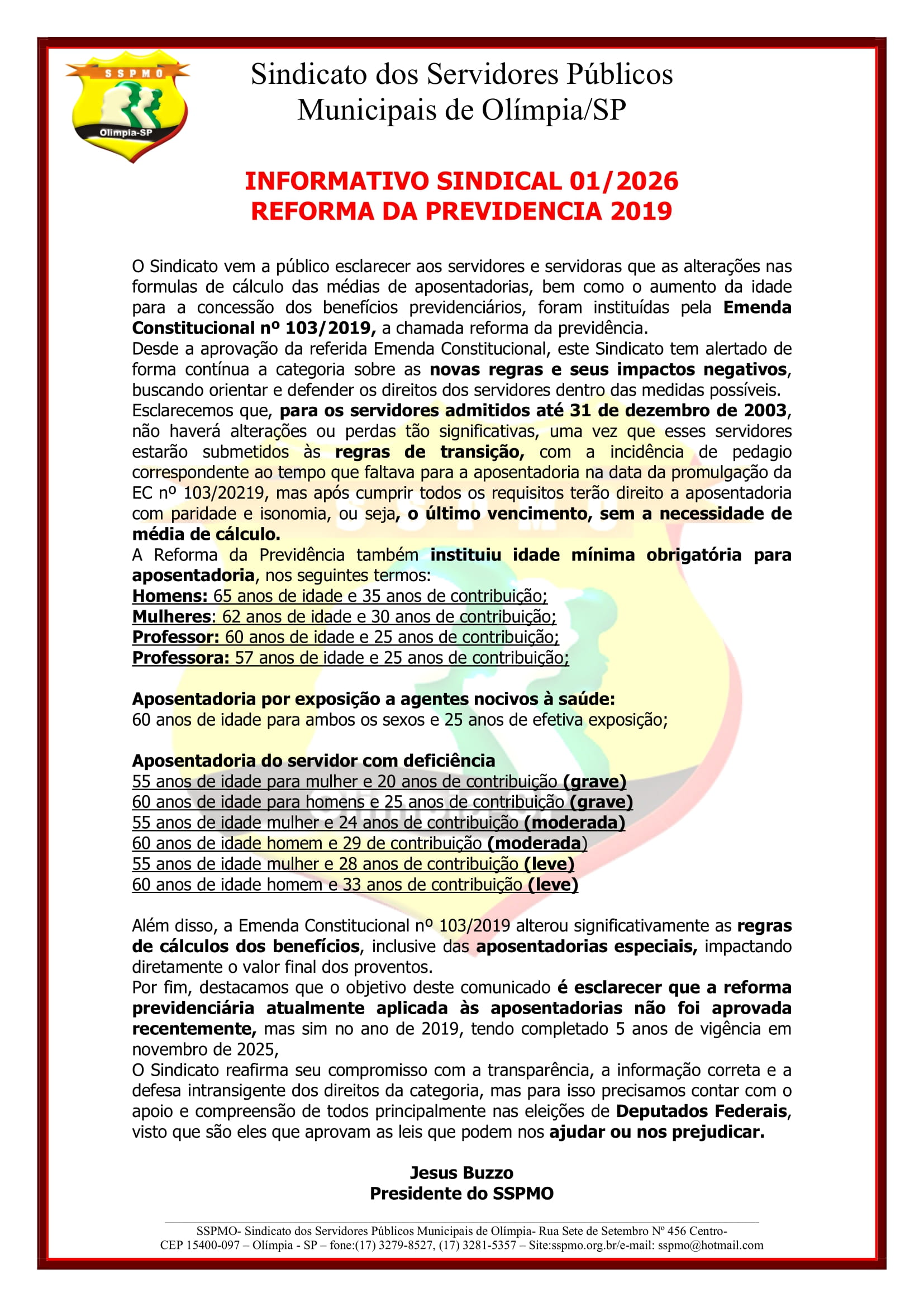 INFORMATIVO 01 DE 2026 - Sindicato dos Servidores Públicos Municipais de Olímpia-SP