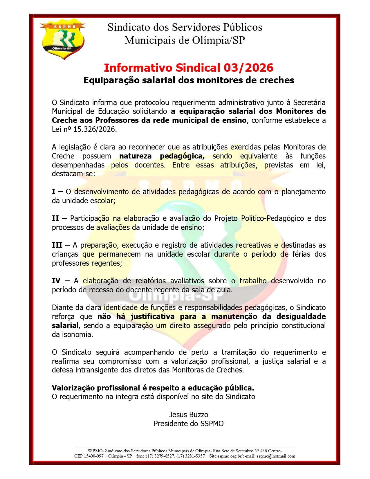 INFORMATIVO 03 DE 2026 - Sindicato dos Servidores Públicos Municipais de Olímpia-SP